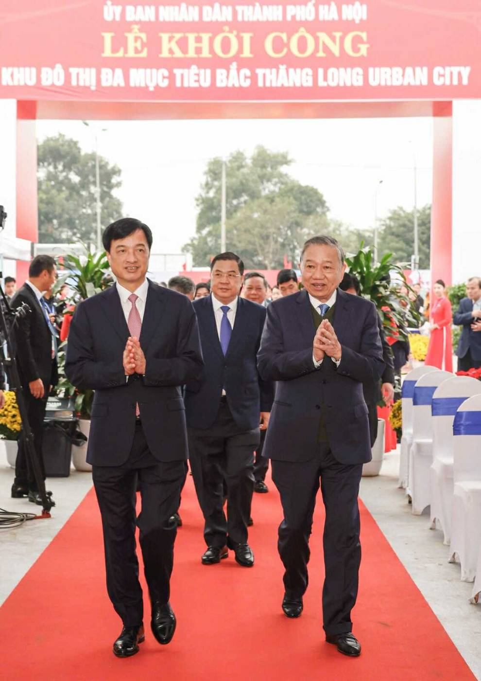 Tổng bí thư Tô Lâm và Bí thư Thành ủy Hà Nội Nguyễn Duy Ngọc tới dự và phát lệnh khởi công Khu đô thị đa mục tiêu Bắc Thăng Long Urban City